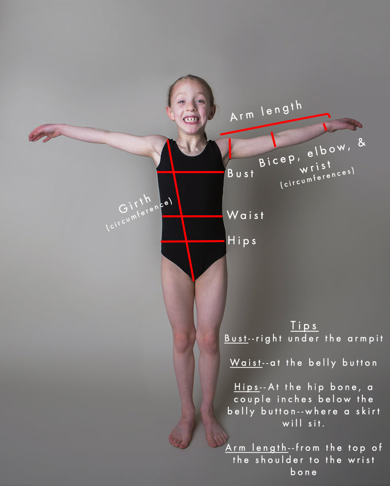 Bust: Around the body under the arms, where the lowest part of the scoop of a sleeve would hit